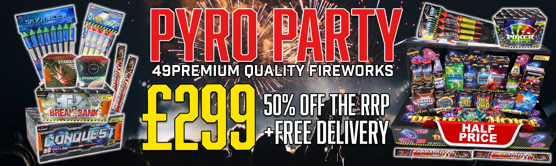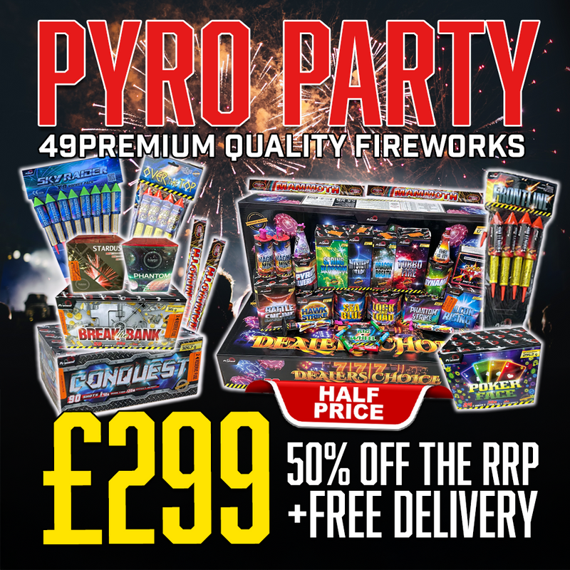 Our expansive range includes firework Cakes, Rockets, Sparklers, Fountains, Mines, Roman Candles, Ice Fountains, and Catherine Wheels. With outstanding products from leading manufacturers, including Brothers Pyrotechnics, Black Cat, and Celtic Fireworks - as well as our very own range - we have something to suit every taste. With a broad range of special offers and buy one get one frees, we can offer two things that don't always go hand in hand: the highest quality and incredible prices.