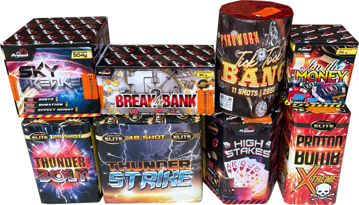It features absolute beasts like In The Money (which packs a frightening amount of power for its size) and the unique Tick Tock Bang, which starts as a gentle fountain before hitting you with a massive detonation. The whole lot builds up to Sky Breaker—a finale piece that is just pure, aggression-filled noise.