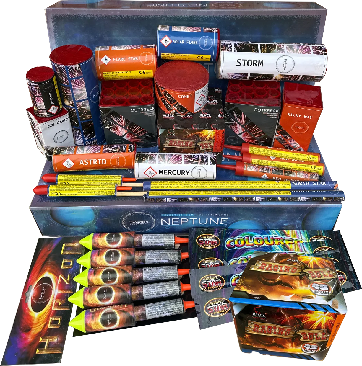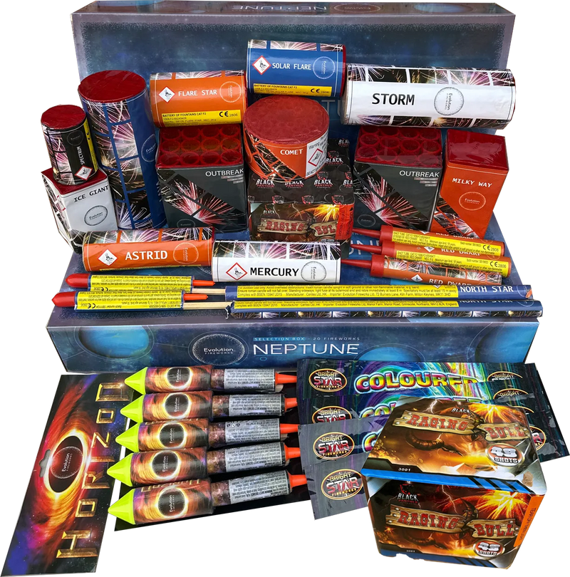 If you are looking for a complete garden display in one easy package, the Neptune Bargain Bag is the catch of the day. We have taken the high-quality Neptune selection box from Evolution Fireworks and boosted it with extra items to create a 26-piece variety pack that offers incredible value.