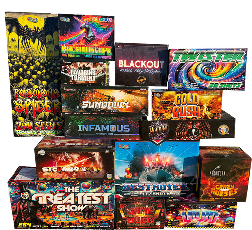 This collection includes both in-stock and temporarily unavailable items. If you see a product listed here, it means we plan to restock it soon. We only remove fireworks that we won’t be carrying again — so if it’s here, it’s coming back. For specific stock information, don’t hesitate to contact our team.
