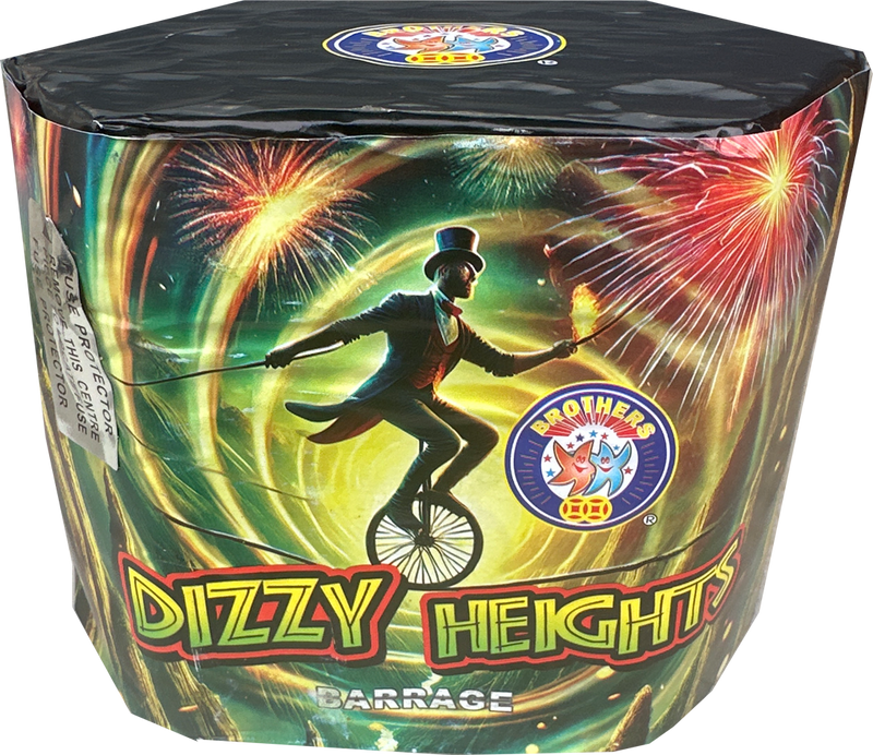 We really didn’t need any more fireworks but at a firing night we watched the Dizzy Heights and said we just must have that one as so unique. This lower noise cake producing fantastic silver swirling tourbillion tails which rise to spit red and green coloured stars and a subtle crackle is simply a must have. Make sure you add one to your basket.