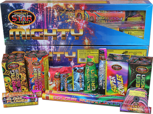 Each pack includes a variety of fireworks such as fountains, roman candles, small cakes and rockets. Larger packs may include compound cakes or finale pieces for a professional finish.