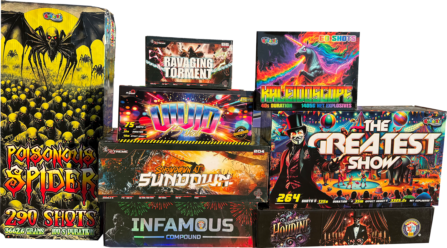 If you want a display that’s easy, impressive, and guaranteed to wow your audience from start to finish, the Compound Crazy Pack is the ultimate choice—bigger, better, and totally bonkers value.