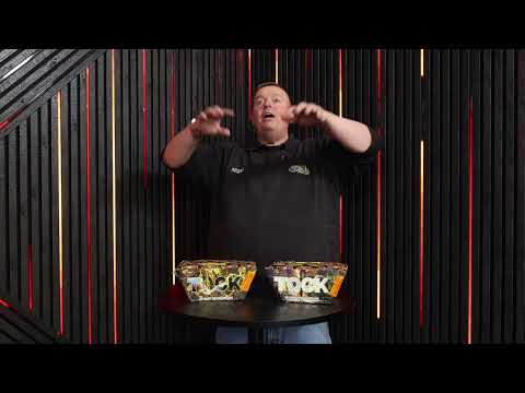 While Tock focuses on waves, Tick is all about vibrant colour and strobe. It hammers through volleys of red peonies with time rain, green peonies with red strobe, and huge brocade crowns, before finishing with a noisy crackling finale.