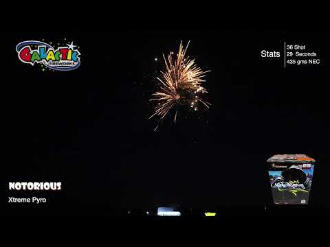 25 shots from 30mm bore sized tubes means massive sky filling breaks. Just watch the video and you will witness massive golden brocades with red twinkling tips then some green and silver tips thrown in for good measure. Big finale with silver swimming fish tips. Quality cake from Xtreme Pyro