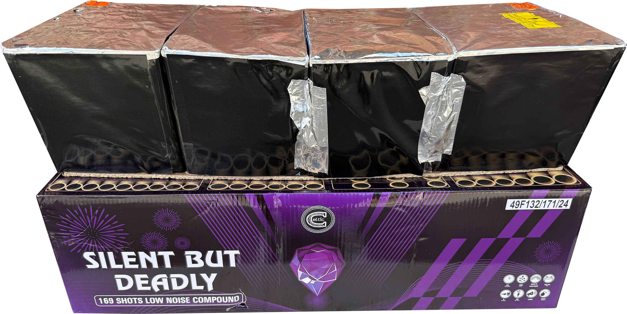Silent But Deadly is widely regarded as one of the best "Low Noise" compounds on the UK market. Packed with 169 shots and running for over a minute and a half, it proves that you don't need noise to create a spectacle.