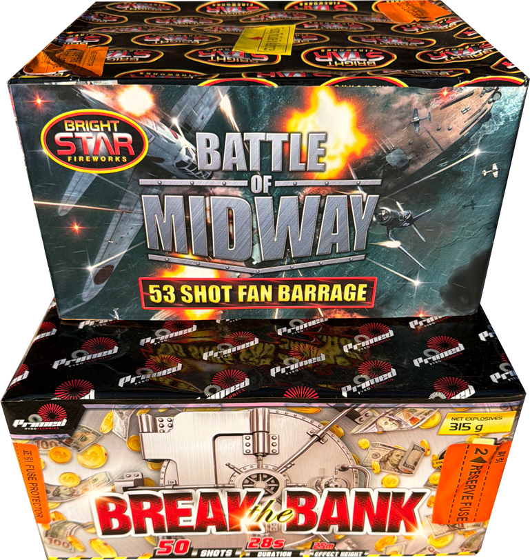 We select two fireworks (typically cakes) that work brilliantly together and offer them as a discounted pair. Instead of paying full price for each firework individually, you get both at a reduced bundle price.