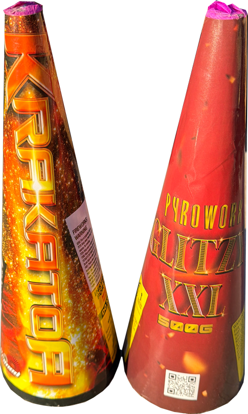 Krakatoa erupts with aggressive lava-like crackles and height, while Glitzy XXL delivers a dazzling, long-lasting display of gold and silver sparkles. Between them, you get a staggering 2 minutes and 48 seconds of continuous performance. These are Category F3 items, so they need 25 metres of space, but for long-duration, ground-based entertainment, you simply cannot beat this pair.