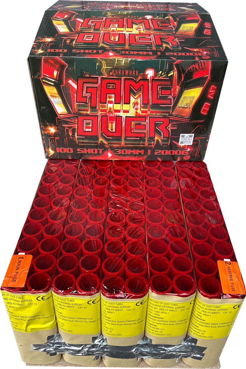 In all my years of selling some of the very best pyro out there I've never come across a firework so furious and aggressive as the Game Over! Seriously the loudest thing Ive ever heard making this particular 5 cake compound one to finish your display with. Be prepared to be blown away like never before.