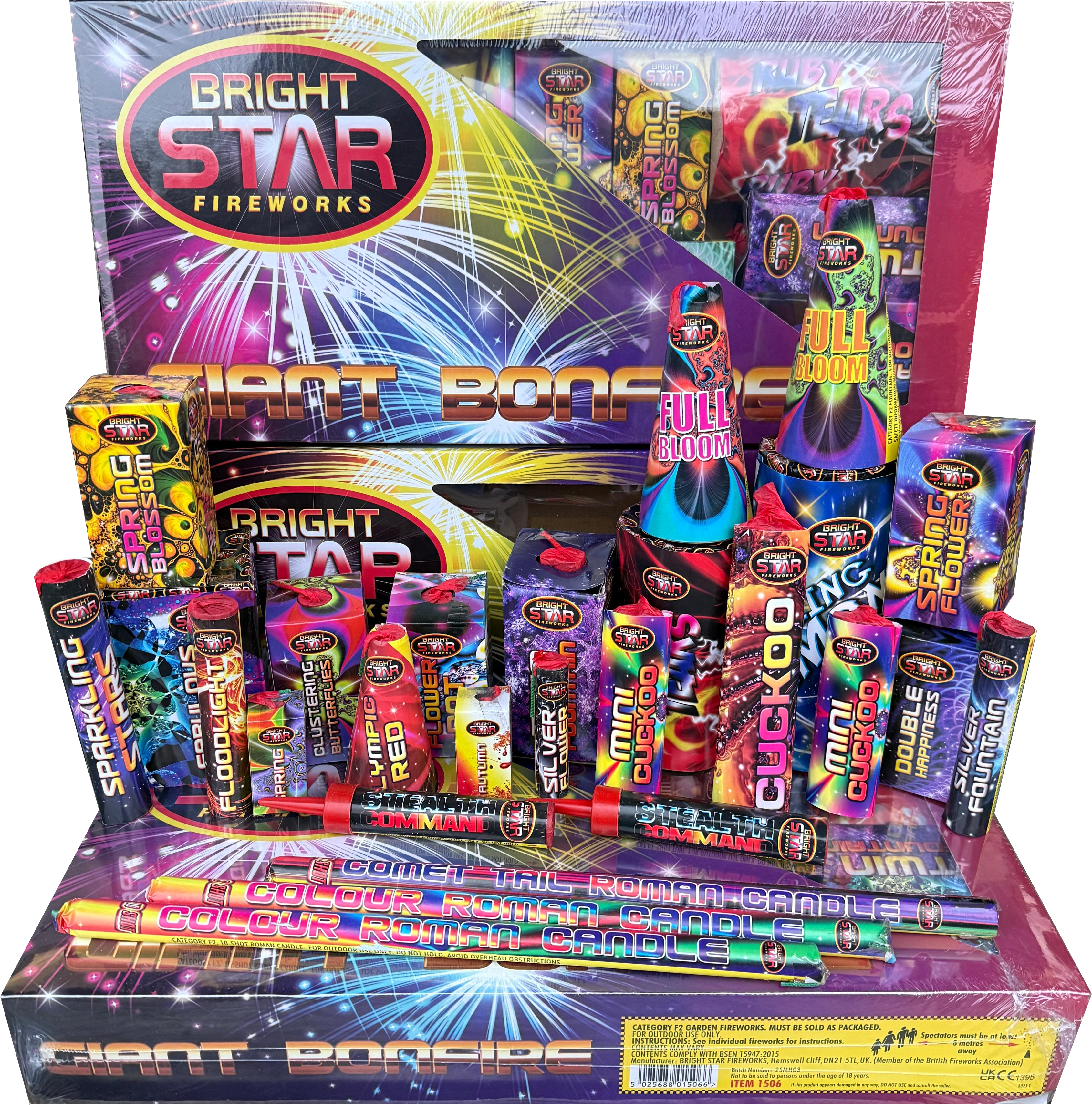 Giant Bonfire Selection Box from Bright Star Fireworks is our most popular box. The Giant Bonfire exceeds all expectations for effects and value for money.