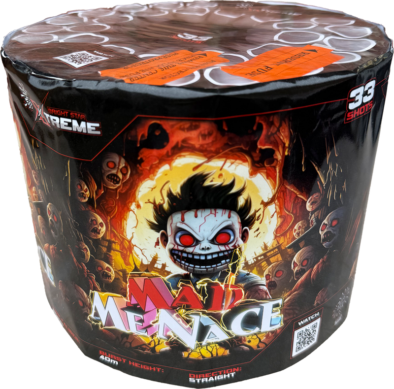 I love selling high-end quality fireworks at unbeatable prices, and the Mad Menace is without a doubt one of the best I have seen. Part of the new "Xtreme" range from Bright Star, this cake is designed to push the boundaries of what a typical garden firework can do.