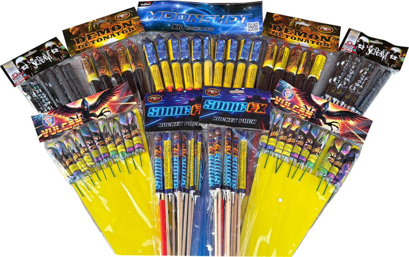 - 20 x Vulcan: Reliable garden rockets delivering mixed colour breaks.