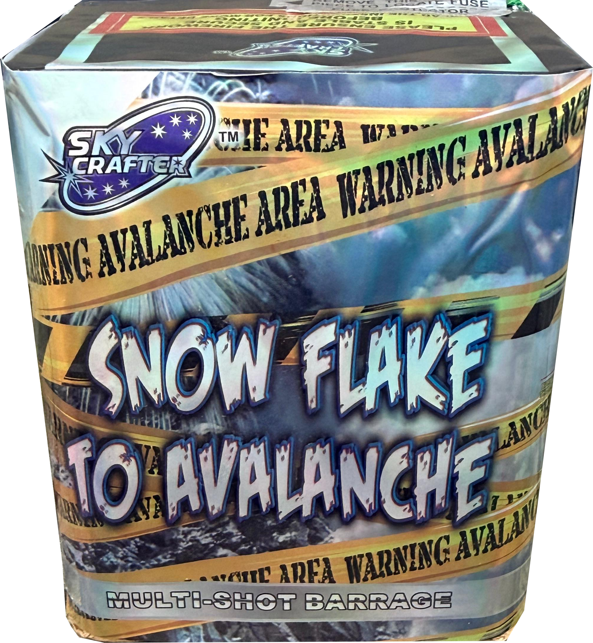 Snowflake To Avalanche from Sky Crafter is a compact 12-shot cake that delivers surprisingly large effects for such a small unit. It fires a sequence of red tails that burst into lovely gold willows, each tipped with a mix of red, green, blue, and lemon stars.