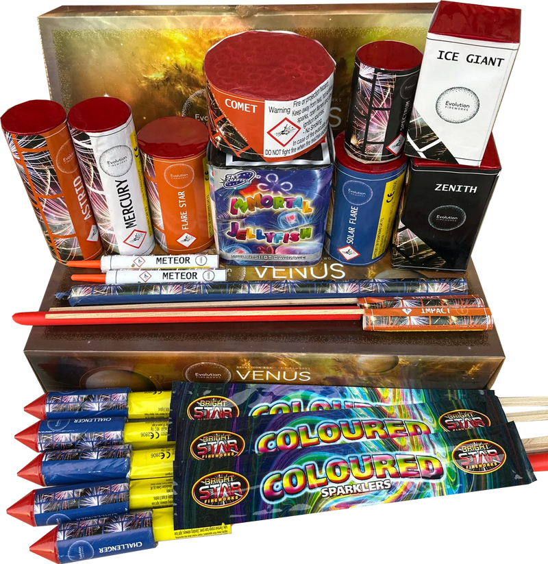Add a spark of family fun to your back garden with our £39.95 Bargain Bag! Enjoy a colourful Bonfire Night with the kids, featuring sparklers, candles, fountains, and rockets. It has great value and is perfect for smaller gardens. Light it up!