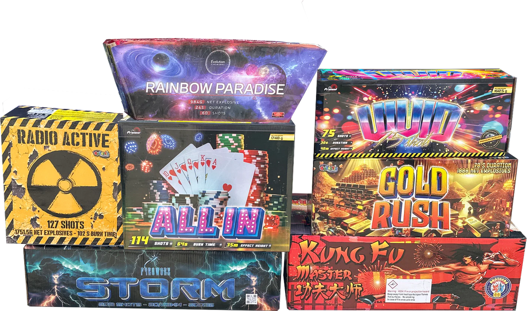 • Massive Range – everything from rockets and cakes to sparklers and fountains.