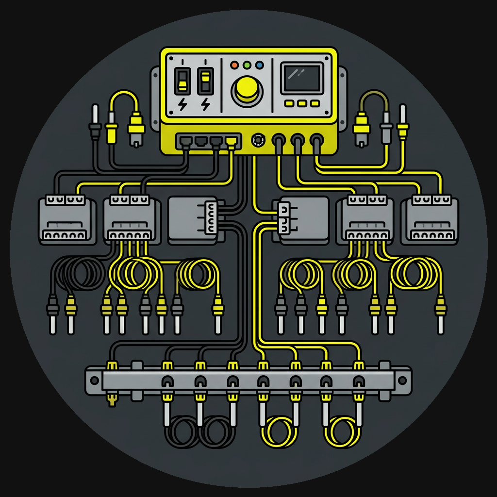 An electric firing system uses a control box and e-matches (electrically ignited fuse heads) to fire fireworks remotely. You wire an e-match to each firework, connect them to numbered cues on the control box, then fire each one from a safe distance by pressing a button. Systems range from 12-cue hobbyist units to multi-hundred-cue professional systems.