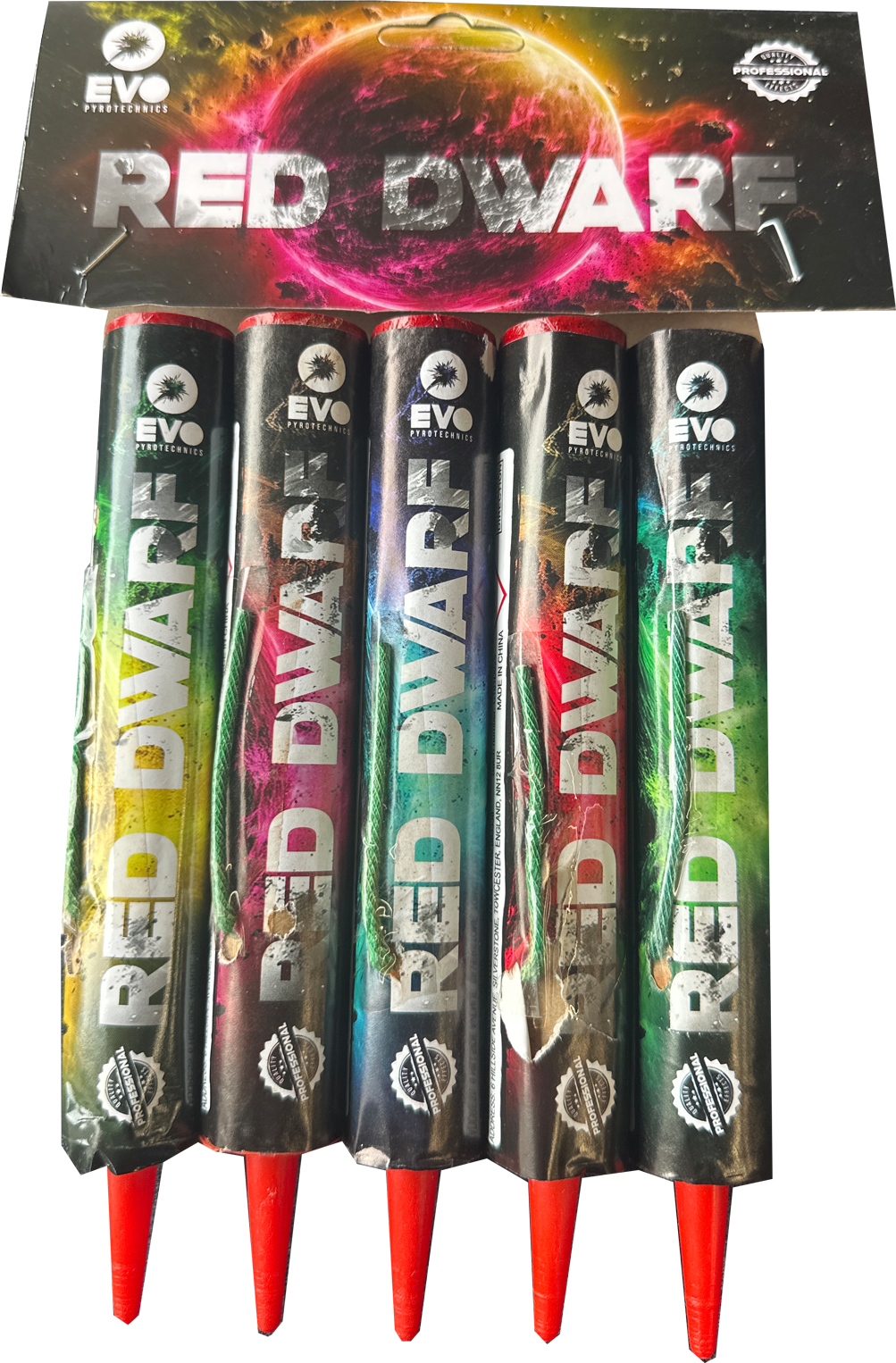 Small name, big attitude. The Red Dwarf pack from Evolution Fireworks is proof that good things come in small packages. These aren't your traditional "Roman Candles" that just spit out quiet coloured balls; think of these more like mini shot tubes.
