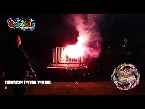 Siberian Swirl is an larger 8 motor catherine wheel firing a pair at a time for great thrust and produces showers of sparks with red to yellow to white that repeated over 45 seconds