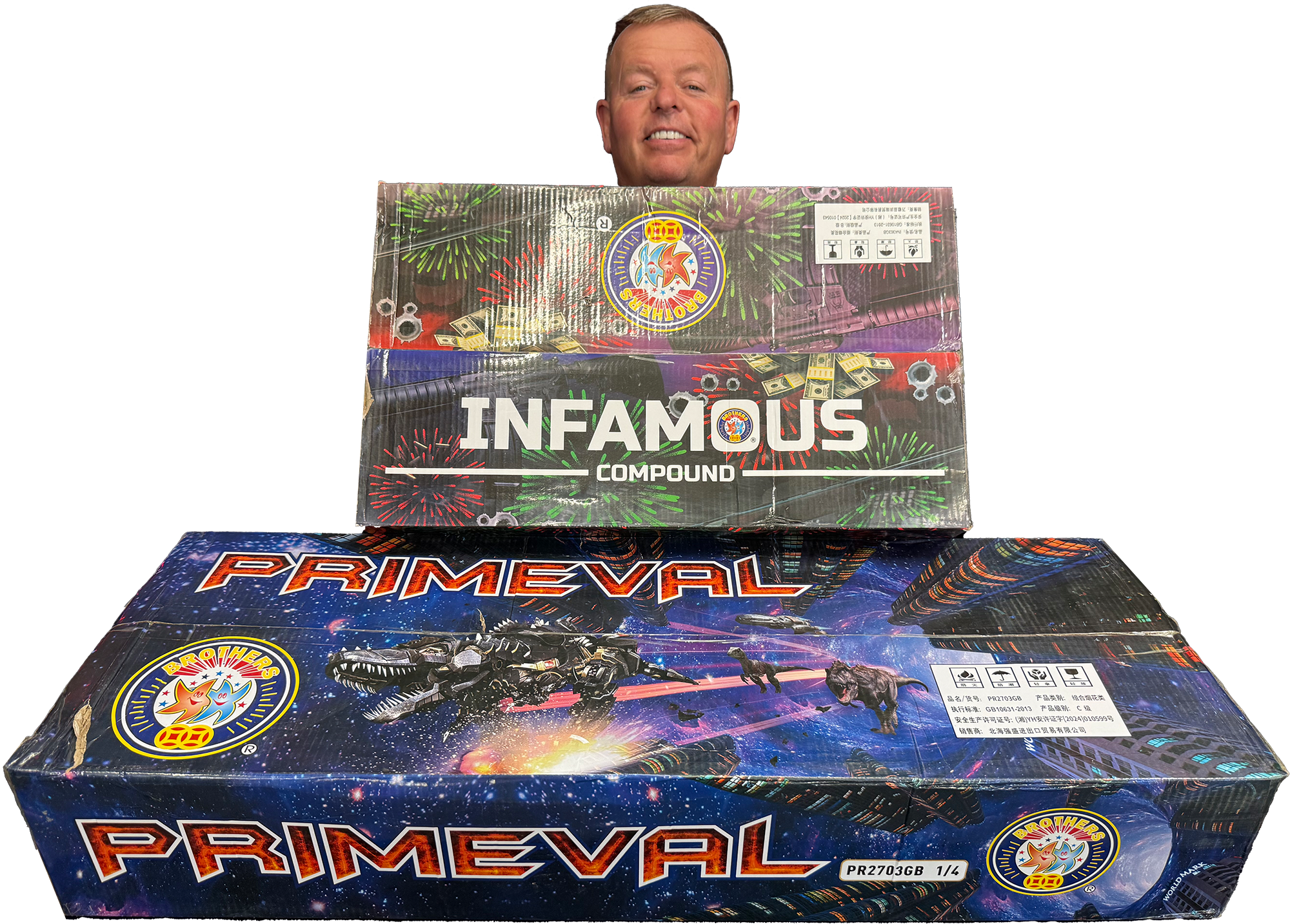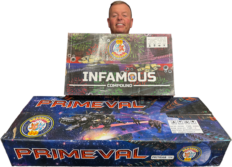 Why settle for one beast when you can have two? We have bundled together two of the heaviest hitters from Brothers Pyrotechnics—Primeval and Infamous—to create a twin-pack that delivers over 4 minutes of non-stop, 1.3G aggression.