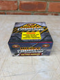 Each shot launches with a high-pitched shriek and a bright tail, a hundred of them back to back creating a wall of noise and light. F2 rated with an 8-metre safety distance, 1.4G classification.