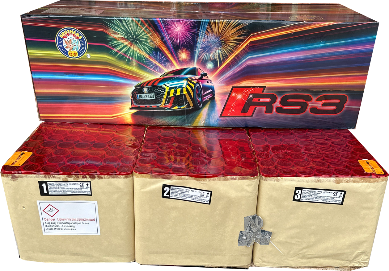 A rather unusual compound we have here and thats due to the fact its purely straight firing (normally compounds have varied firing patterns). Yes its got three heavy duty 49 shot 30mm tube cakes meaning 147 massive sky filling breaks.